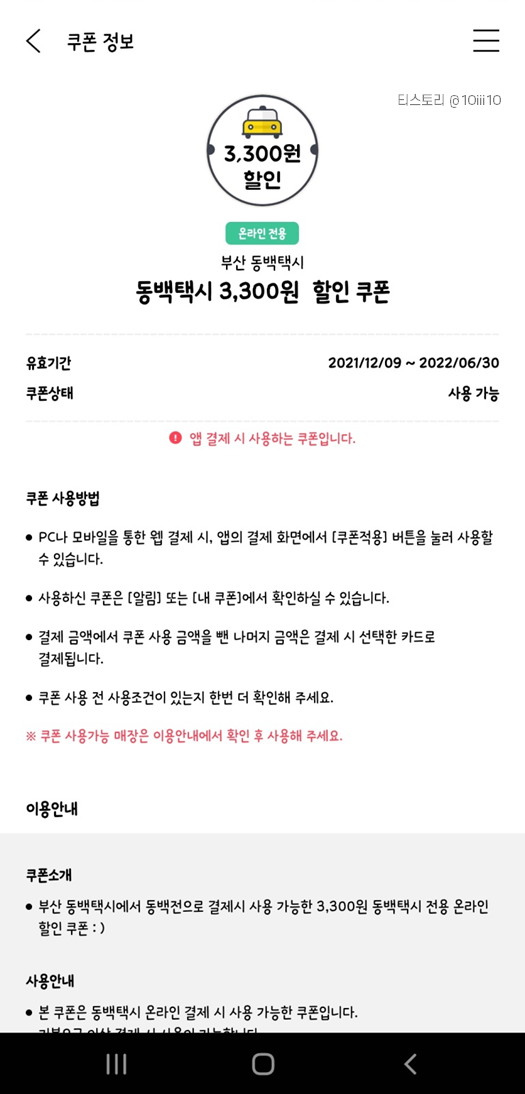 3. 부산 동백택시 할인쿠폰 발급받는 방법